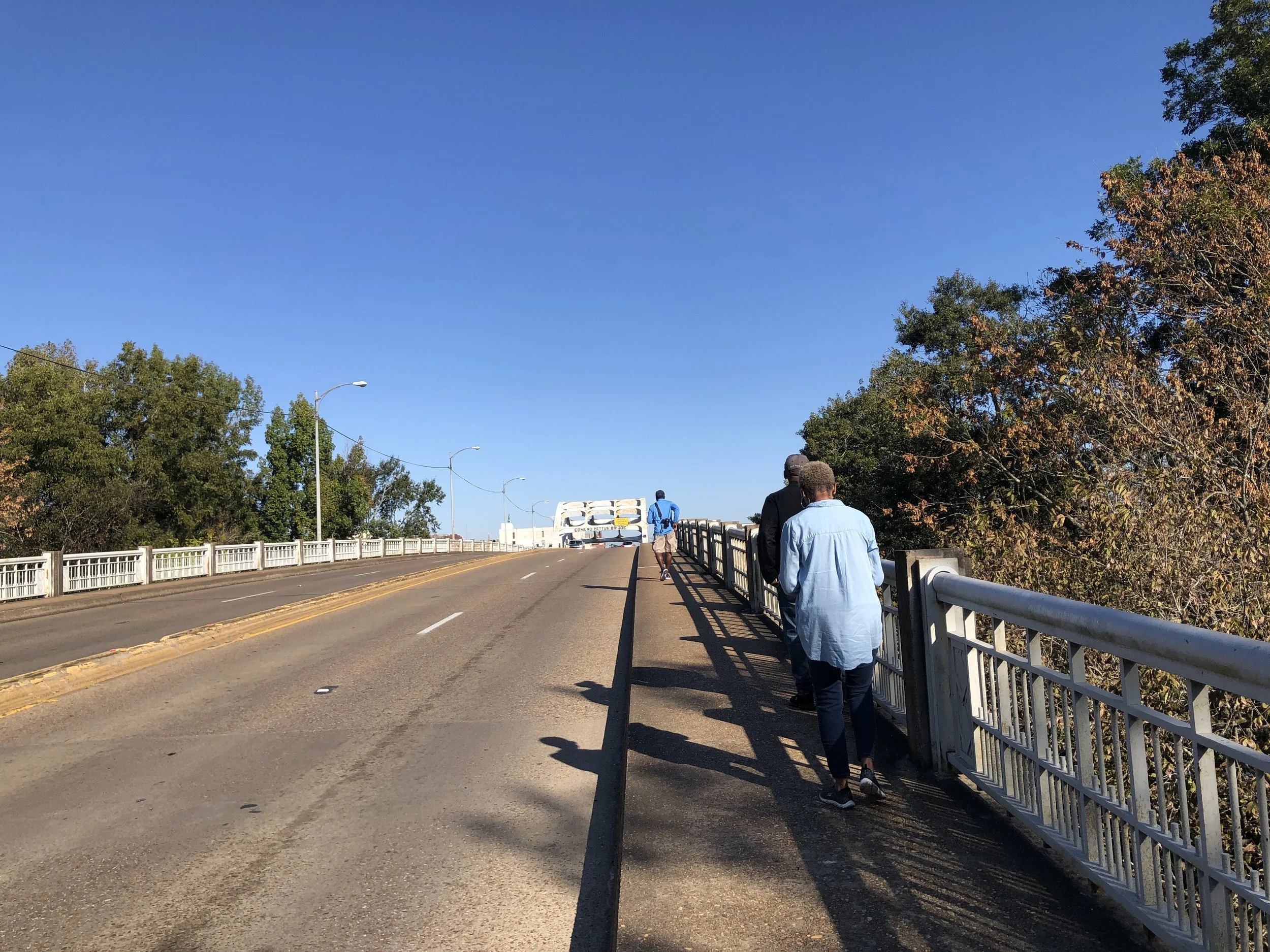 We spent time in the Legacy Museum, Peace and Justice Memorial Center, the Civil Rights Museum, Greyhound bus station (where Freedom Riders were brutally attacked), and worshipped at Dexter Baptist Church where MLK Jr. had pastored. On a clear sunny day we went to Selma to stand on hallowed ground and walk the Edmund Pettus bridge. The bridge has an arch to it. Walking up toward the town, only blue sky holds the bridge. But my heart still begins to race as I imagine the scene upon reaching the crest of the bridge on that Bloody Sunday in 1965. The street stretching from the foot of the bridge was lined with hate – dogs taught to attack, men on horses, billy clubs. Hate for nothing other than the color of skin. And still the people walked on, walked right into the violence ~ knowing this is not the land of the free but of the brave.